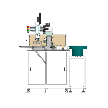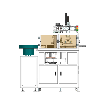功能简述:该设备为新能源电动汽车电池极柱自动化上料植入模具内进行生产,从而实现自动化生产。设备将产品的二种物料焊接环与极柱,进行自动供料排列,自动定位校准,自动取放成品,自动吸着植入模具内,与注塑机联机进行自动化循环生产。